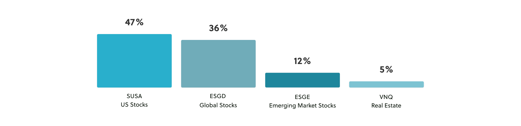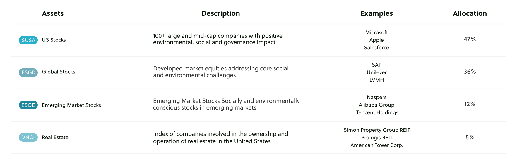 ستجد أدناه قائمة صناديق المؤشرات المتداولة في المحفظة المسؤولة اجتماعيًا لدينا:
