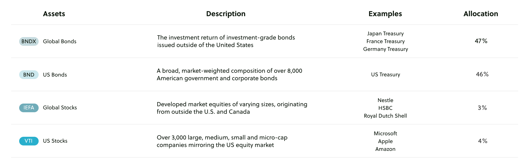 ستجد أدناه قائمة صناديق المؤشرات المتداولة في المحفظة التقليدية لدينا: